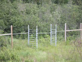Our welding facility fabricates and assembles Ungulate Gates as per the Ministry’s standard and specifications. They are designed to prevent wildlife access to traffic. If an animal is on the wrong side of the fence, the gate allows for a safe and easy exit off the highway. The gate is specifically designed to operate in sections to avoid obstructions in opening and closing.